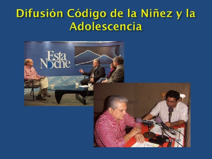 Instituciones Gubernamentales Instituciones No Gubernamentales Corte Suprema de Justicia Unión Europea, Bruselas Ministerio Público Observatorio Internacional de Justicia Juvenil (OIJJ) Alcaldías Municipales Instituto Internacional de los Derechos del Niño (IIN) Comisarías de la Niñez y la Adolescencia Centro de Prevención de Violencia Intrafamiliar (CEPREV) Ministerio de Relaciones Exteriores Universidad Americana (UAM) Comisión de la Mujer, Niñez y Adolescencia de la Asamblea Nacional. Aldea SOS, Chontales Comisión de Justicia de la Asamblea Nacional Liceo Agrícola, Juigalpa Consejo Supremo Electoral Amigos de las Américas, Boaco Universidad Nacional Autónoma de Nicaragua: Managua y León. Centro de Rehabilitación para adolescentes con adicción a las drogas, Condega.