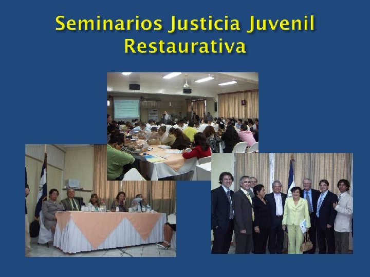 1. Primer Seminario Internacional: Consistió en el Diagnostico sobre Administración de Justicia , en el que se concluyó que se contaba con leyes, tratados, convenios e infraestructura mínima, no obstante faltaba un cambio de mentalidad, conciencia o actitud por parte de los Operadores de Justicia. 2. Segundo Seminario Internacional: Estudio de las circunstancias propias de la Costa Atlántica, con fines de proceder a la adaptación de la Administración de Justicia del pacífico a las regiones del Caribe, contando con un Código de la Niñez y la Adolescencia en lengua Misquita. 3. Tercer Seminario Internacional: Se planteó la implementación de un proyecto para administrar justicia de adolescente con enfoque restaurativo en 4 zonas pilotos del país con la atención directa de la Fundación Terre des Hommes y a nivel nacional a cargo de la OTSSPA, siempre con la asistencia técnica de la referida Fundación. 4. 1 er. Seminario Justicia Juvenil Restaurativa - Lima, Perú 2008: Intercambio de experiencias sobre la Justicia Juvenil con Enfoque Restaurativo. (Nicaragua - Perú).