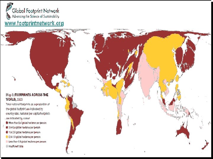 L’impronta ecologica del pianeta Living Planet Report 2008 -dati 2005 Impronta ecologica 2. 7 haprocapite Biocapacità’ disponibile 2. 1 ghapro capite Deficit ecologico – 0. 6 haprocapite L’UTILIZZO UMANO A LIVELLO GLOBALE DI MATERIE, CIBO, ACQUA ED ARIA, SUPERA GIÀ OGGI DI CIRCA IL 40%, LA CAPACITÀ DELLA TERRA