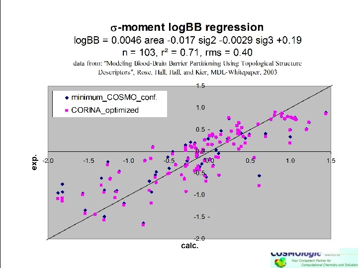 -moment log. KHSA regression log. KHSA = 0. 0081 area -0. 016 sig 2 -0. 013 sig 3 +0. 145 sig. Hacc+0. 88 n = 82, r² = 0. 69, rms = 0. 33 data from: Kier, Hall, MDL-Whitepaper, 2002 0. 00811599 0. 01641931 7 1