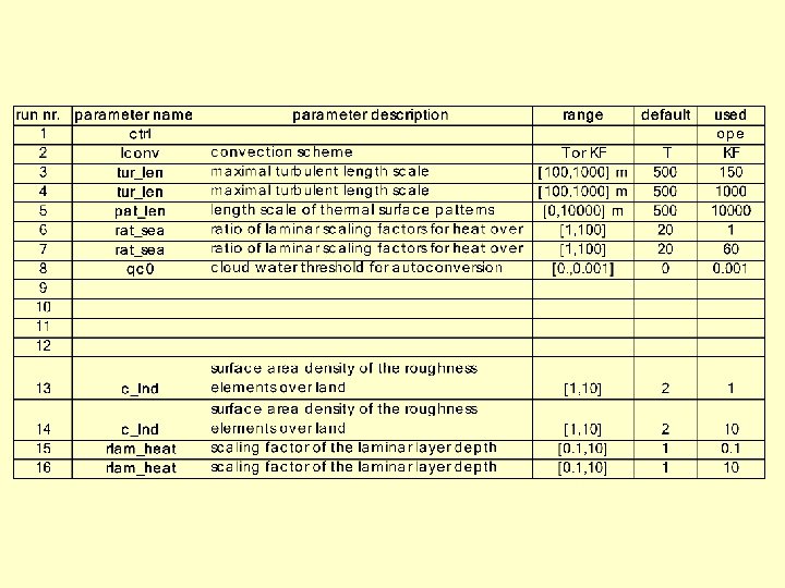 Test of parameter perturbations (same father) IFS – ECMWF global LM at 25 km on IFS P 1: control (ope) P 2: conv. scheme (KF) by INM Spain P 3: parameter 1 P 4: parameter 2 P 5: … 16 LM runs at 10 km