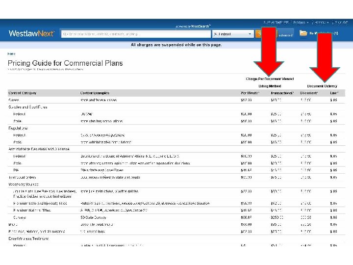 Westlaw. Next - Cost Recovery =charging back to client l $60 per search l PLUS a find charge for items clicked on (Transactional Mode) OR per minute charge (Hourly Mode) l Cost chart – Click on Tools tab, then Subscriber Pricing Guide (non-discounted rates)
