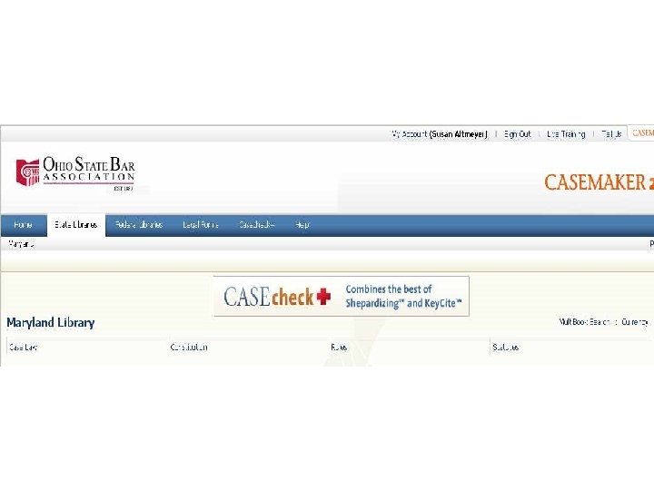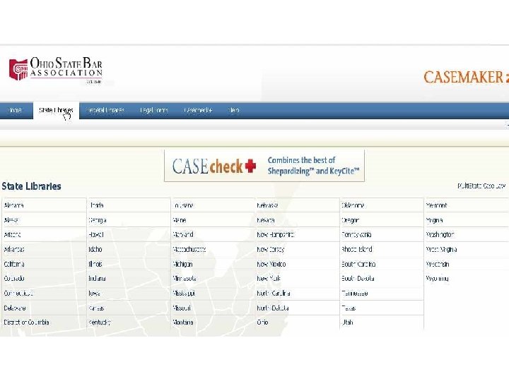 Access to Low Cost Databases l Library Website, Electronic Resources Page. l Casemaker: ohiobar. org. Free with FREE student membership to the Ohio State Bar Association