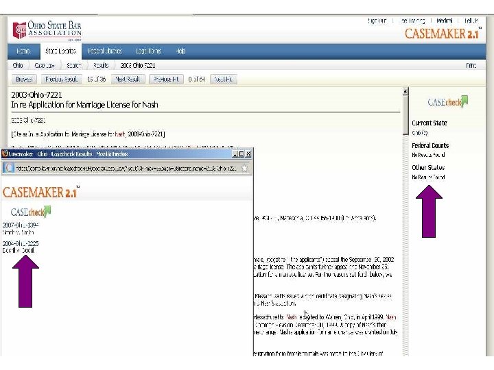 Stripped Down Versions of Lexis and Westlaw l l Casemaker – best coverage for Ohio. Odd search syntax Fastcase – Natural Language, Visual Charts Loislaw - Best terms and connectors, field searching. Treatises. Alert searches. Versus. Law – Cheapest, worst coverage