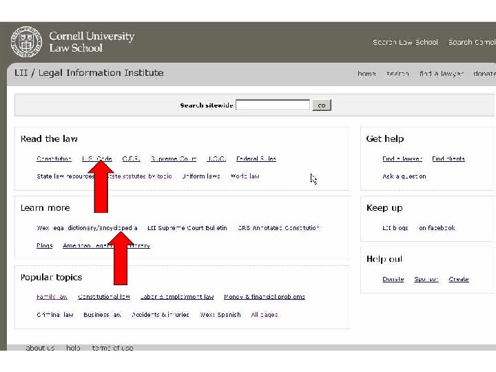 Start with a Good Internet Portal l From the Library Home Page – Legal Research on the Web Public Records & People Finders Cornell Legal Information Institute (LII)