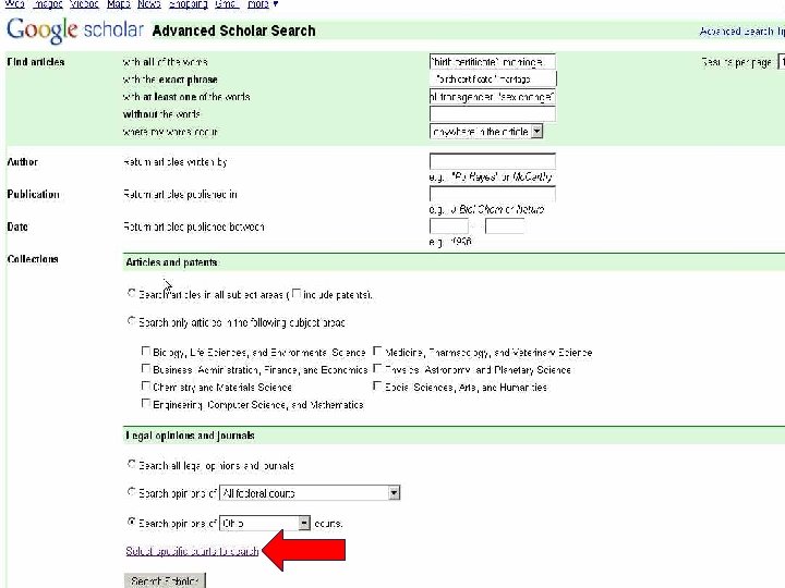 Google Advanced Operators l l l AROUND –ex. constitution AROUND(5) "home rule“ ~ searches for synonyms and related words ex. ~constitutionality - searches for constitutional, unconstitutional, etc. * placeholder for a word. Ex. sexual * abuse picks up “sexual misconduct abuse”, “sexual child abuse”, etc.