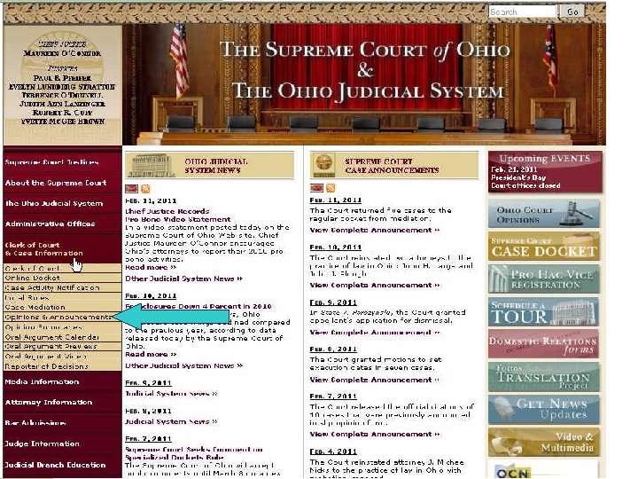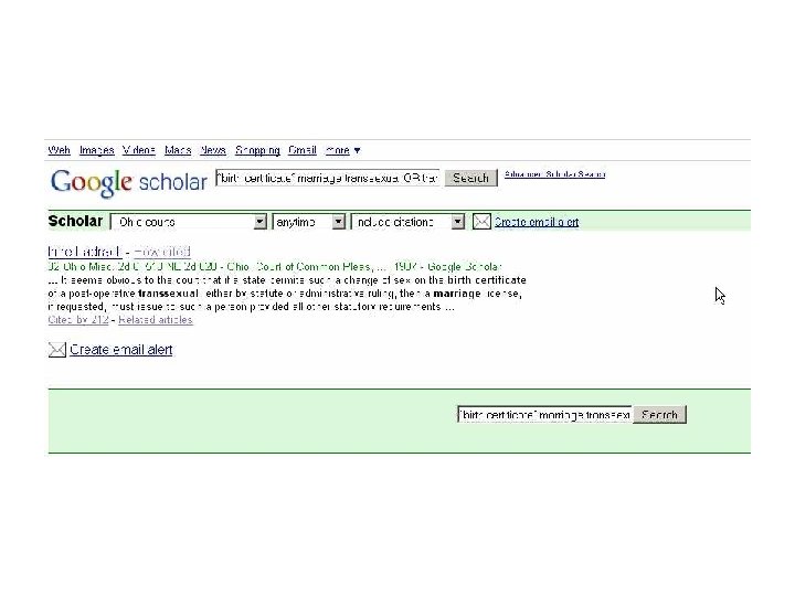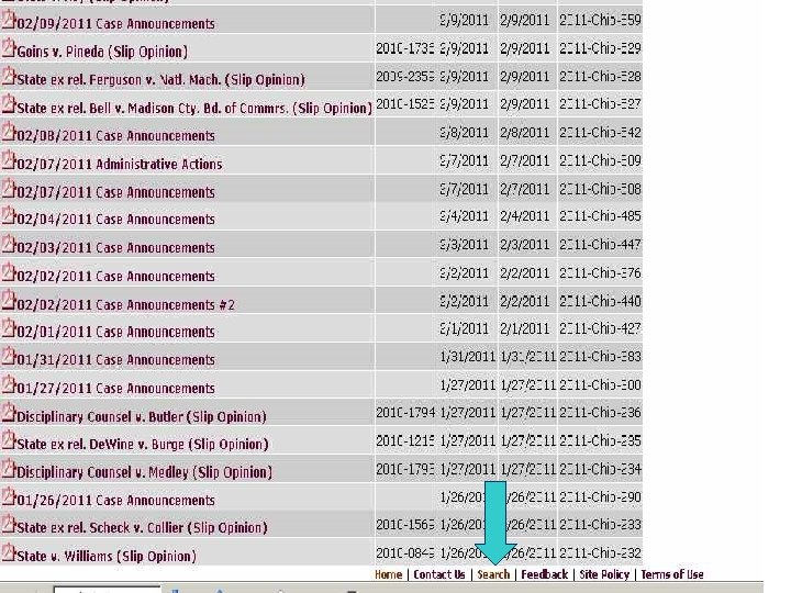 Case law l l Google Scholar – state reported 1950 -, fed circuit/ district 1923 Ohio Supreme Court Lexis. One – Last 10 yrs, Lexis searching Legal Research on the Web - Cases