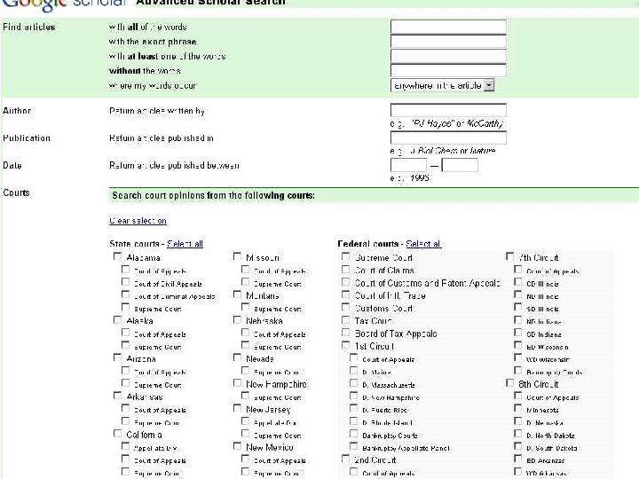 What’s on the Free Web l l All US Supreme Court Cases Reported Federal Appellate from 1882 Some Unreported Fed App, Fed District State cases: reported – 1950. unreported - early-mid nineties