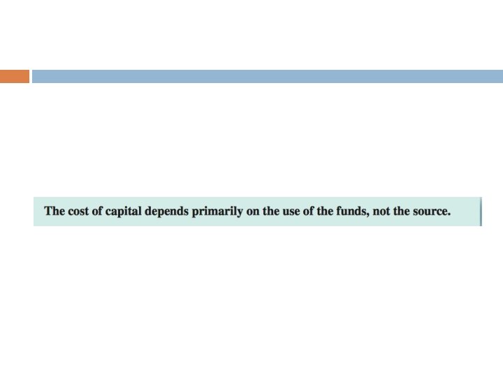 Example: Cost of Debt Suppose we have a bond issue currently outstanding that has 25 years left to maturity. The coupon rate is 9%, and coupons are paid semiannually. The bond is currently selling for $908. 72 per $1, 000 bond. What is the cost of debt? �N = 50; PMT = 45; FV = 1000; PV = -908. 72; CPT I/Y = 5%; YTM = 5(2) = 10%