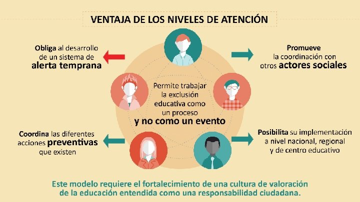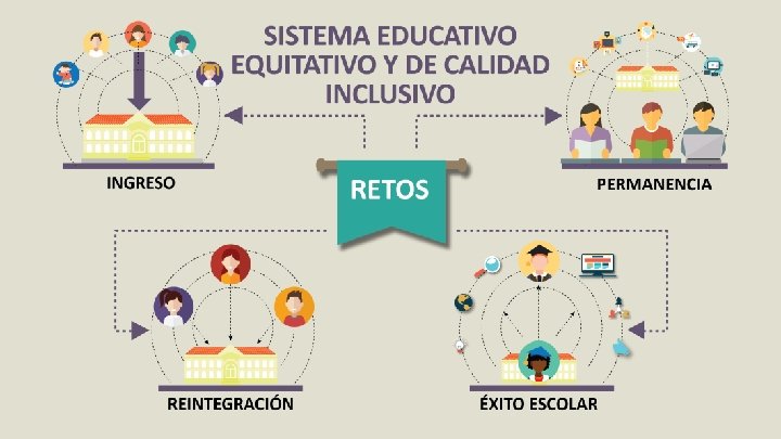 COORDINACIÓN INTERINSTITUCIONAL Modelo de gestión Despacho de Ministra Viceministerios 75 distritos Poblaciones vulnerables definidos RETO EXCLUSIÓN Universidades Coordinación e integración Fundaciones ONG Organismos internacionales DRE CENTROS EDUCATIVOS
