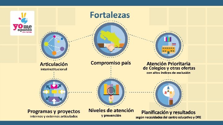 YO ME APUNTO comunidades virtuales Coordinación al interno del MEP I Foro Nacional: La educación como responsabilidad ciudadana Articulación Iniciativas MEP a favor de la permanencia y el éxito escolar Transición de sexto a sétimo y de Encuentro de lideresas y líderes noveno a décimo año Uso compartido de infraestructura en las modalidades del sistema educativo Primer diagnóstico para estudiantes de décimo año de colegios nocturnos Ciclo de video conferencias Estrategia especifica para colegios Nocturnos YO ME APUNTO