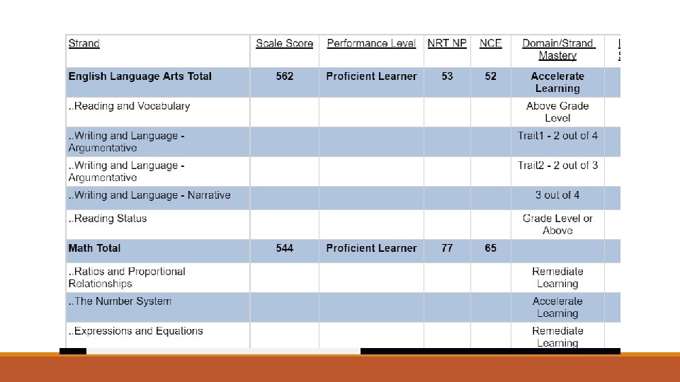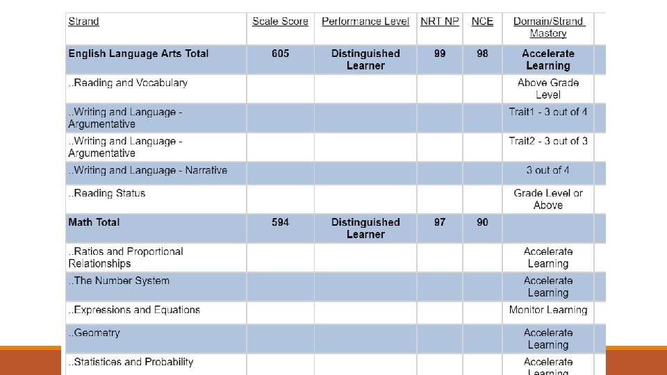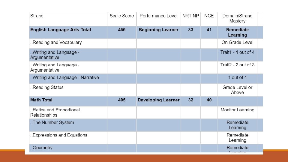 Why does it matter? Advanced Students o. Tend to be good critical thinkers and problem solvers o. Are able to take higher level math courses in high school, which could transfer to college credit o. Are ready to acquire the advanced skills required for 21 st century careers o. Are often able to take and understand higher levels of science courses o. A student who scores at the Proficient or Advanced level by the end of the school year is considered to be performing on grade level, and is on track to meet the demands of college and career by the end of high school.