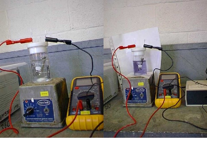 • Iodine is generated at one electrode (oxidation) • Must be a reduction at the other electrode • Water is reduced to hydrogen gas • Can see bubbles forming on the electrode • Electrodes have large surface area so that the current density is low.
