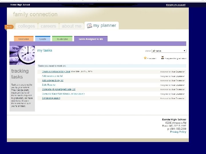 NAVIANCE • Every student has a Naviance Account • They can sign in through CLEVER or utilize the Naviance Link on the Bowie High School website: – Click School Counseling Department under quick links – Click Important Information – Scroll down to Naviance