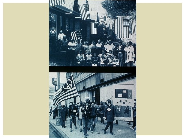 THE FIRST D. C. RALLY April 17, 1965 § One month after the U. S. sent its first troops to Vietnam § Staged by the Leftist group, Students for a Democratic Society § 16, 000 people picketed outside the White House § “No More War” § “We Want Peace Now” § Only 4 arrests made