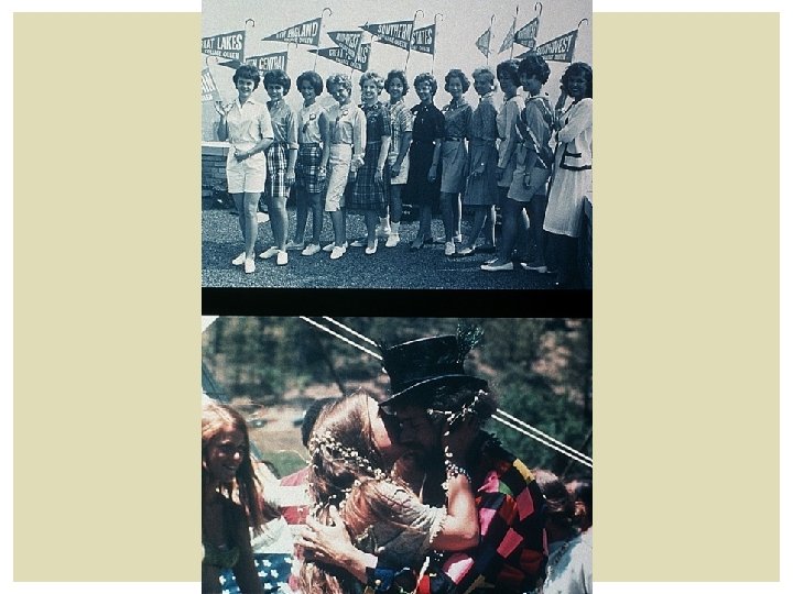 NEW MUSIC STYLES The folk, pop, & rock music of the 1960 s also challenged mainstream values. § Bob Dylan’s folk songs, like The Times They Are A-Changin’, became c-c anthems, promoting social justice. § The Beatles sang about a “Revolution” inspiring youth to change their world, while Joni Mitchell sang about preserving nature in Big Yellow Taxi § By late 60 s, psychedelic rock was in vogue w/groups like Jefferson Airplane, Jimi Hendrix, & the Doors, Led Zeppelin heavy guitar & explicit sex & drug references In ’ 69, these elements all came together at a farm in NY at the Woodstock festival. More than 500 K people came together to camp out, take drugs, engage in free love, & listen to rock