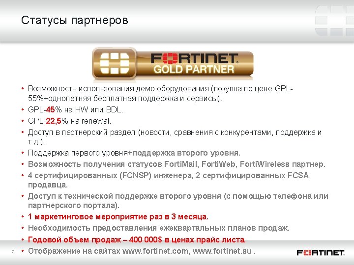 Информация в сети Наименование Адрес Официальный сайт: www. fortinet. com Российский сайт: www. fortinet. su Техническая документация: docs. fortinet. com Спецификации: www. fortinet. com/resource_center/datasheets. html Демо онлайн: www. fortinet. com/resource_center/product_demo_ce nter. html Учебный центр: campus. training. fortinet. com 16