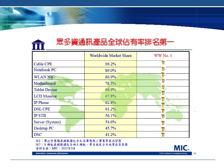 Taiwan Electrical and Electronic Manufacturers' Association Industrial Performance PRODUCTION VALUE in 2012 Taiwan's Total Manufacturing Production Value US$501, 646. 1 Million 50% Taiwan’s E&E Industries (from the Upper, Mid, to Down Stream Sectors) Production Value US$250, 775. 2 Million EXPORT in 2012 Taiwan's Total Export Value US$301, 110. 9 Million 46. 7% Taiwan’s E&E Industries (from the Upper, Mid, to Down Stream Sectors) Export Value US$140, 590. 6 Million IMPORT in 2012 Taiwan's Total Import Value US$270, 726. 6 Million 25% Taiwan’s E&E Industries (from the Upper, Mid, to Down Stream Sectors) Import Value US$67, 646. 7 Million Sources: Department of Statistics, Ministry of Economic Affairs, The Department of Statistics, Ministry of Finance Edited by TEEMA. 5 www. teema. org. tw