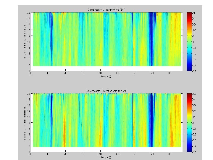 Profil vertical de vitesse à l’apex de la tempête, le 1 er nov. 2008 Vent: 15 m/s Sud-Est Houle: Hs = 3, 6 m Tp = 10 s Dp de Sud-Est