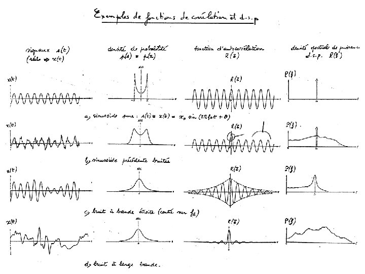 1. Définitions : spectre, dsp, corrélation Ø On définit : - le spectre d’amplitude - le spectre de phase - on parle de spectre de raies pour le spectre d’un signal constitué de fréquences pures Ø La dsp est définie à partir de la fonction d’autocorrélation comme Théo. de Wiener-Kintchine
