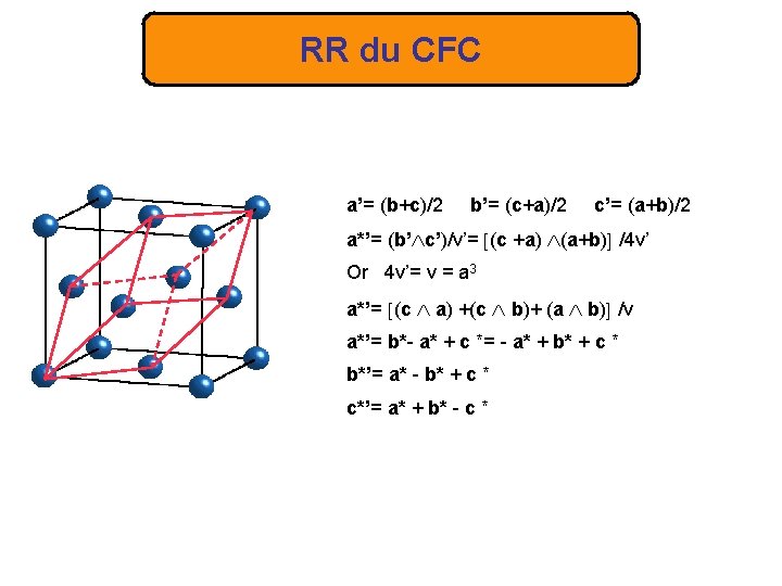 RR du CFC RD RR a*= c c* a*=bcsin v a*=bc/abc=1/a De même: a b b*=1/b c*=1/c De plus compte tenu des définitions de a*, b* et c* on a : a*//a, b*//b et c*//c a* b*