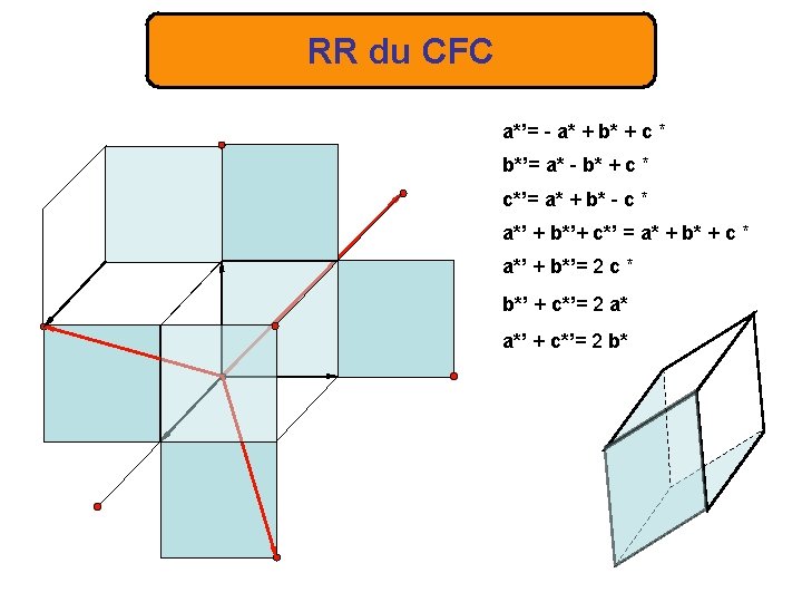 RR du CFC RD RR a*= c* c a*=bcsin v a*=bc/abc=1/a De même: b*=1/b a b c*=1/c De plus compte tenu des définitions de a*, b* et c* on a : a*//a, b*//b et c*//c b* a* ? ?