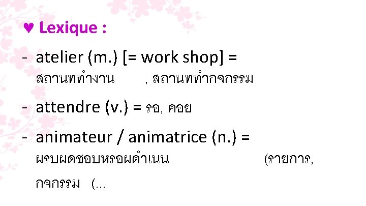 ![Cours de français [ฝ 30203] pour les élèves en classe de première [ม. 5] Cours de français [ฝ 30203] pour les élèves en classe de première [ม. 5]](https://slidetodoc.com/presentation_image/6b303501e0498f7cdc836d27dee1c87b/image-1.jpg)