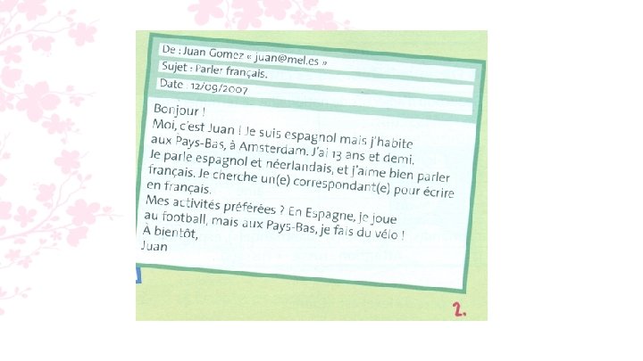 1 a. Vrai ou faux ? Justifie tes réponses. 2. Niels habite aux Pays-Bas. Vrai (Elle est hollandaise. )