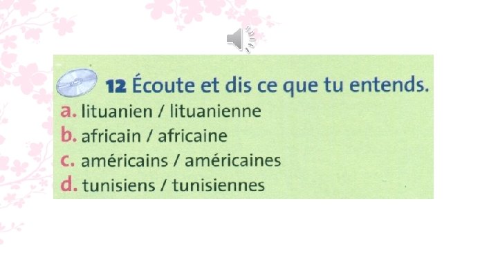 12. a. lituanienne; b. africain; c. américaines; d. tunisiens.