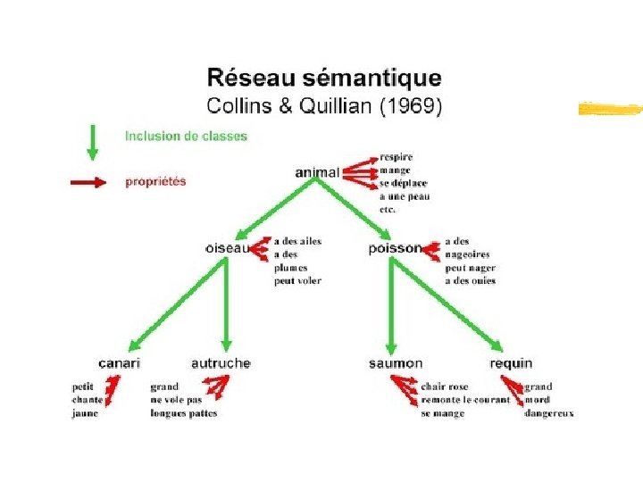 1 - PRELIMINAIRES : définitions, repères historiques, applications Réseau d’activation et connexionnisme : un autre courant de recherche a dominé ces dernières années et est basé sur la notion de distribution de l’activation. On sait que les neurones forment un réseau complexe. Chaque neurone communique avec un ou plusieurs autres au moyen de synapses ayant un effet exitant ou inhibant. A un niveau plus abstrait, on stipule que les informations circulent d’une unité de traitement à une autre. Distinction d’avec le modèle computationnel : 1) il rejette la notion de représentation. 2) il ne considère pas que les opérations mentales s’effectuent par une suite de calculs en série, mais par un traitement parallèle distribué. Modèle PDP (parallel Distributed Processing) : réseau dont les unités sont interconnectées par des liens pondérés. Le connextionnisme est considéré comme non-réductionniste.
