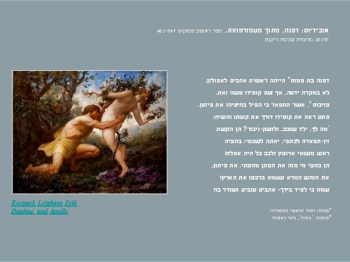 : מקורות http: //www. artcyclopedia/Daphne http: //www. pantheon/daphne http: //www. wga/apollo http: //mythologica/daphne http: //www. theoi/Daphne http: //www. latein-pagina/ovid http: //www. mlahanas/Daphne http: //commons. wikimedia/Daphne http: //www. artres/Daphne אסף פלר : עריכה Jamnitzer, Wenzel (1508 -1585) Daphne. Silver statuette, with coral. Musee de la Renaissance, Ecouen, France