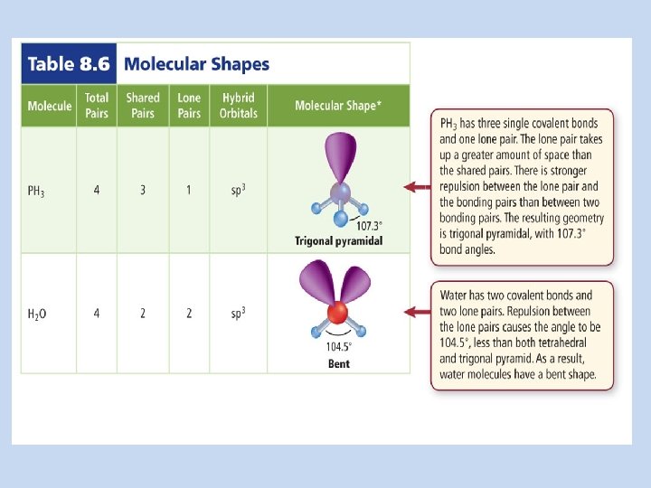 Molecular Polarity • Polar Molecule (H 2 O, CH 2 F 2, NH 3) – Different ends of the molecule OR – Lone pairs on central atom • Nonpolar Molecule (CO 2, CH 4) – Same ends on the molecule AND – No lone pairs on central atom