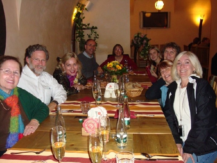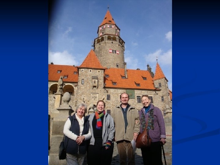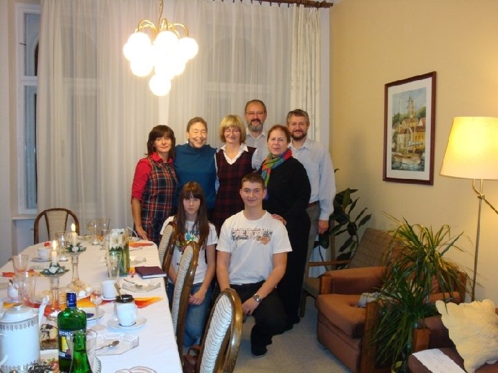 Olomouc Welcome reception at church, overnight and breakfast in host homes, all other meals in homes of different members, short visits in other homes, tour of city, visit to Evangelical conservatory, visit to studio of painter, Dvorak concert in historic cathedral, worship, reception with congregation, countryside tour, Bouzov castle, met with church volunteer staff, visit to Mental Health day care, talk with