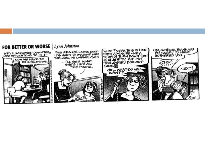 Thank You Notes • • Send a thank-you email within 24 hours of the interview. Send a thank-you note within 48 hours Include specifics about your interview or unique qualifications that will remind them of who you are Consider sending an article on a topic discussed or an answer to a question raised Reiterate your interest in the position and your