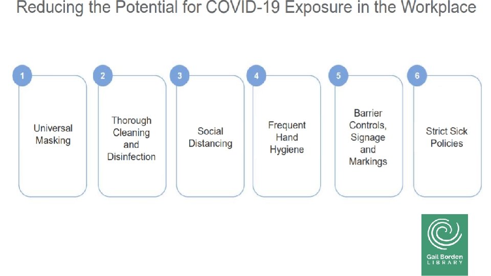 Cleaning Protocol ØMaintenance staff cleans and disinfects all areas of the building and highly touched surfaces, as needed, during the day and evening ØCleaning contractor cleans and disinfects all areas of the building ØGBPL volunteers are responsible for cleaning/disinfecting their immediate personal workspaces (Ex: desk surface, carts, etc. ) ØGBPL volunteers should clean/disinfect shared supplies and equipment ØGBPL volunteers should not use the Staff Room dishwashers (refrigerators may still be used) ØVolunteers are encouraged to bring in their own eating dishes & utensils, wash them, and take them back home