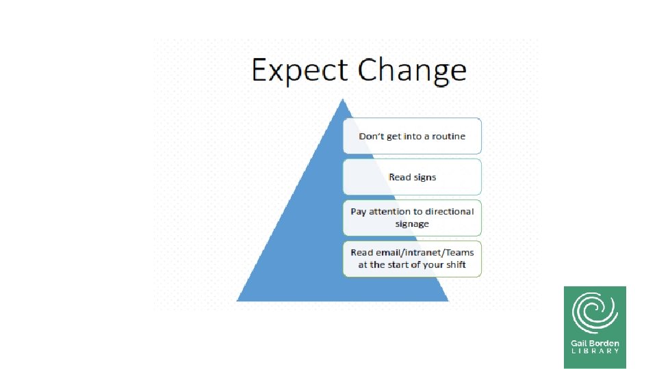 Face Coverings • Volunteers are required to wear a face covering or mask: • • In public areas In shared workroom spaces When near others When a safe distance cannot be maintained • The library will supply a face covering to volunteers who want one. • Volunteers are allowed to wear their own • Volunteers are responsible for the washing and upkeep of their face covering.