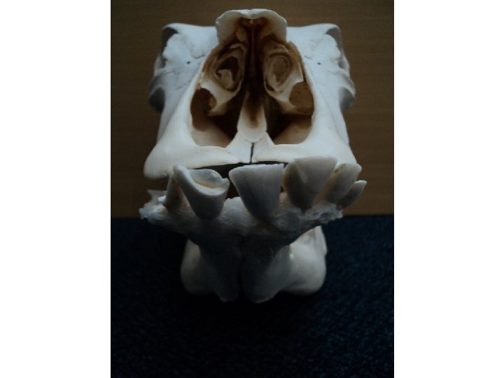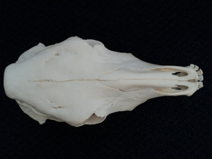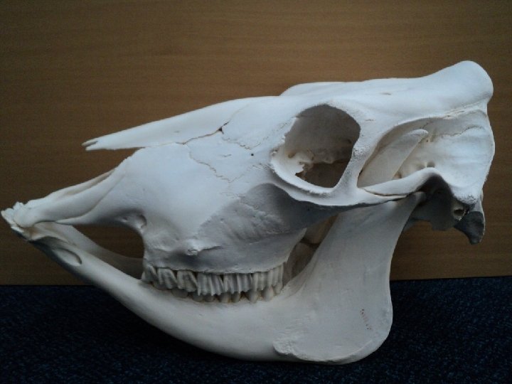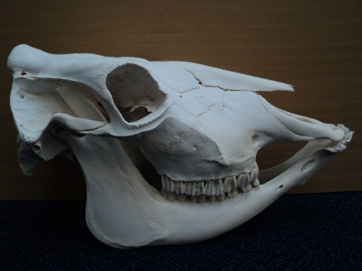Skull of a cow 1) 2) 3) 4) 5) 6) 7) 8) 9) 10) 11) 12) 13) 14) 15) 16) 17) 1 17 2 16 4 3 5 6 7 8 9 Cornual Process Frontal bone Zygomatic arch Orbit Lacrimal bone Zygomatic bone Nasal bone Maxilla Incisive Incisors Mental foramen Infraorbital foramen Mandible External acoustic meatus Paracondylar process Atlas Temporal bone 14 15 13 12 11 10 Frandson, R. D; Wilke, W. E. And Fails, A. D. (2009) Anatomy and Physiology of Farm Animals, 7 th Edition, Wiley-Blackwell, USA.