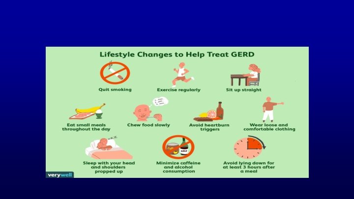 World Gastroenterology Organisation Global Guidelines 2017 • ĐT GERD chủ yếu bao gồm – Thay đổi lối sống – PPIs 8 -12 tuần, 1 lần/ngày 2 lần/ngày 8 -12 tuần nếu chưa cải thiện, chú ý GERD kháng trị + Sau 8 -12 tuần: Ngưng PPIs hay ĐT duy trì liều thấp nhất + Tiếp tục PPI: còn triệu chứng, hẹp TQ, Barrett TQ – Kết hợp prokinetic – Chẩn đoán và tiệt trừ H. pylori – Điều trị biến chứng – Điều trị nội soi – Điều trị PT