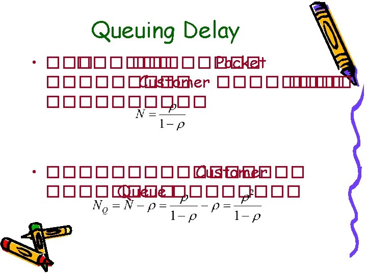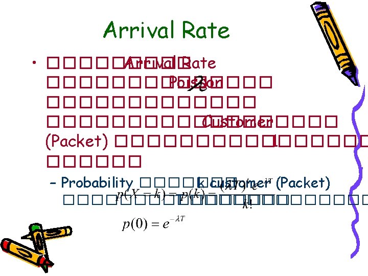 Queue Distribution • ������ Customer (State Probability) ��������� Probability ���� k Packet ����� • ������ p 0 ��� Probability ������ • �������� Customer ������� State Probability ������ Geometric Distribution