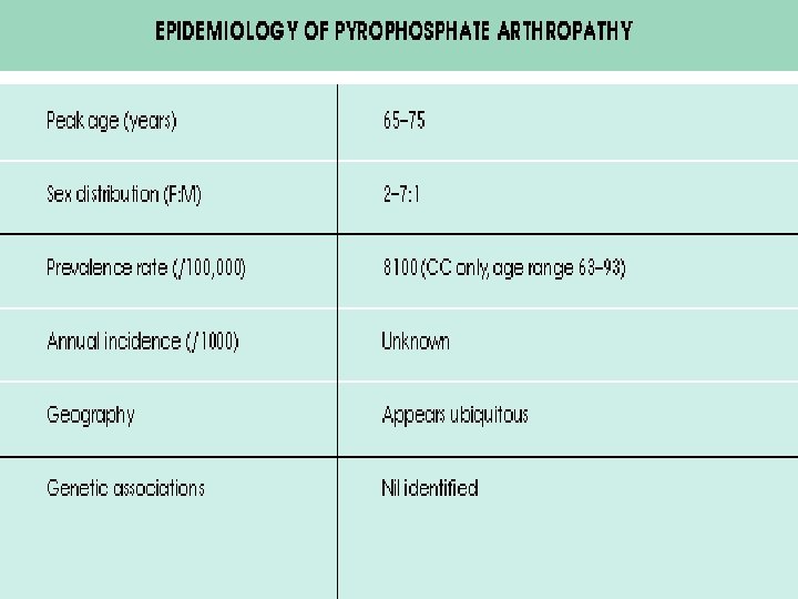 CPPD DEPOSITION DISEASE z Calcium Pyrophosphate Dihydrate Epidemiology
