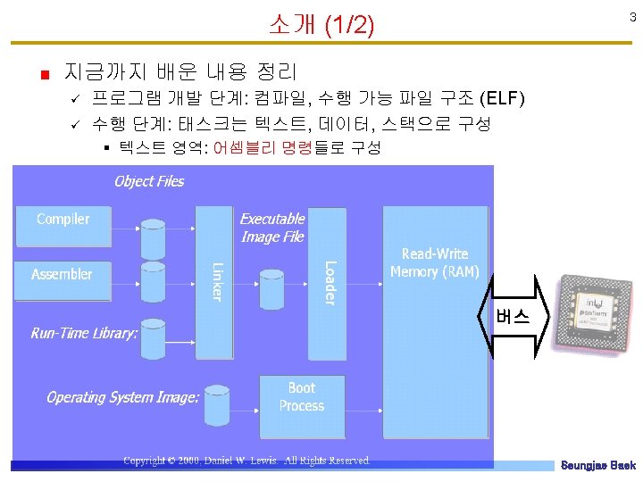 CPU (5/5) 9 Performance Characteristics: Pipeline, Superscalar, Cache 8086 Pentium 각 component는 이후 자세히 다룸 Seungjae Baek