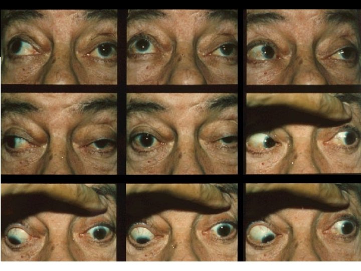 Oculomotor, Abducens and Trochlear • “Keeping you head perfectly still, follow my finger with your eyes. ” • Make a H pattern with your finger. • “Do you see double anywhere? ” • Look for nystagmus.