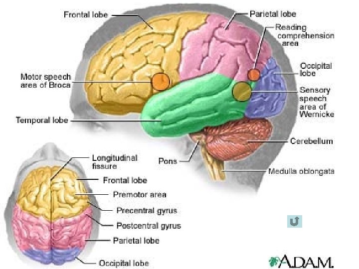 Brain Stem • • Midbrain Pons Medulla oblongata Midbrain connects the pons and the cerebellum with the cerebral hemispheres • Cranial nerves III and IV originate in the midbtrain • Pons in front of cerebellum; between the midbrain and medulla and is a bridge