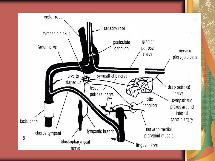 3 - It supplies taste sensation to the anterior two-third of the tongue through the chorda tympani branch. 4 - Through the nervous intermedius (sensory and parasympathetic fibers) it supplies parasympathetic secretomotor fibers to the lacrimal gland (producing tears) and submandibular gland (producing saliva).