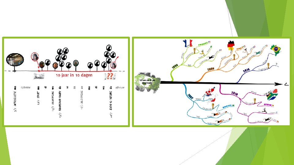 Reflectie De drie winnaars (= de tijdlijnen die de meeste punten verdienden) komen in de gang te hangen. We kijken even naar elkaars creaties