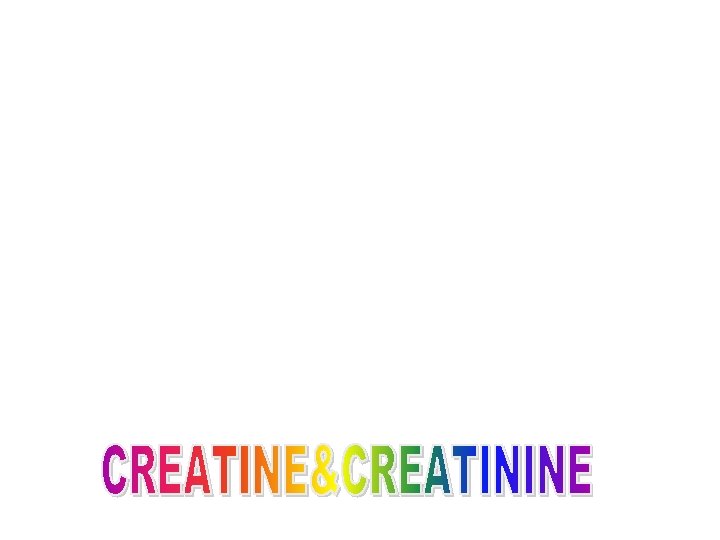 Level of creatine in the blood & urine: ►Plasma creatine level = 0. 4 mg % Whole blood creatine level = 2 - 4 mg % ► Normally little creatine is excreted in urine ( normally < 100 mg /day ). This is more in females & children due to low androgens which increase the uptake of creatine by muscles.