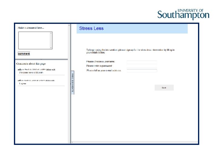 The Life. Guide Community • Download software and help materials • Support from other users - networks of researchers, forum, demos of how to use different logic functions • Collaboration and supervision – share and discuss interventions with own research team, work together on interventions (e. g. translating into other languages) • Dissemination – share and discuss interventions with wider e-health community (demo interventions) • Testing with end-users
