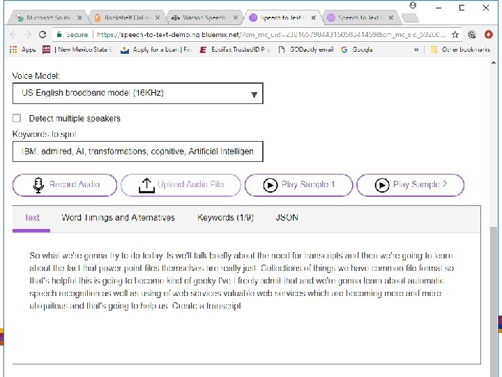 Let’s Review! • • • Create a Narrated Power. Point Presentation. Make a copy. Check folder settings. Needs to show file extensions. Rename the copy with “. zip” extension. Open the. zip file. Navigate to the media directory and locate. wav files. Go to Watson web site. https: //www. ibm. com/watson/services/speech-to-text/ Upload. wav file. Copy and paste text of presentation slide.