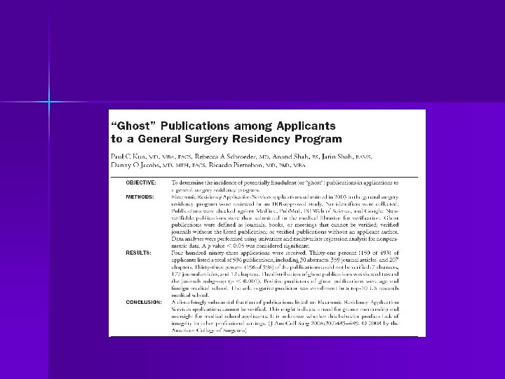 References/LORs n Identify several potential individuals – Clinical professors, 4 th year vs 3 rd year – Not residents, generally not Ph. Ds n n Always ask permission, schedule meeting Prepare information for your references/letter writers (CV and personal statement) Select the most suitable individuals for the position you are seeking Remember to say “Thank You”