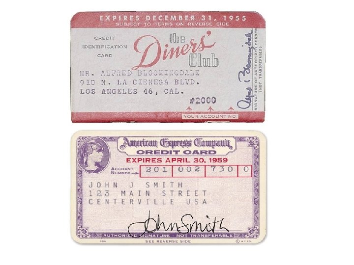 History Edward Bellary used the term credit card eleven times in his 1887 book “Looking Backward”. Early Beginning from 1900 -1946 oil companies and department stores issued their own proprietary cards. First bank card “Charge it” in 1946 by John Briggins. Next came “The Diners Club Card” Stared in 1950. In 1958 American Express enter the credit card industry. American Express introduced the first card made of plastic in 1959 (before cards were made from cardboard/celluloid. Bank. Americard was established in 1959 later to be know as Visa